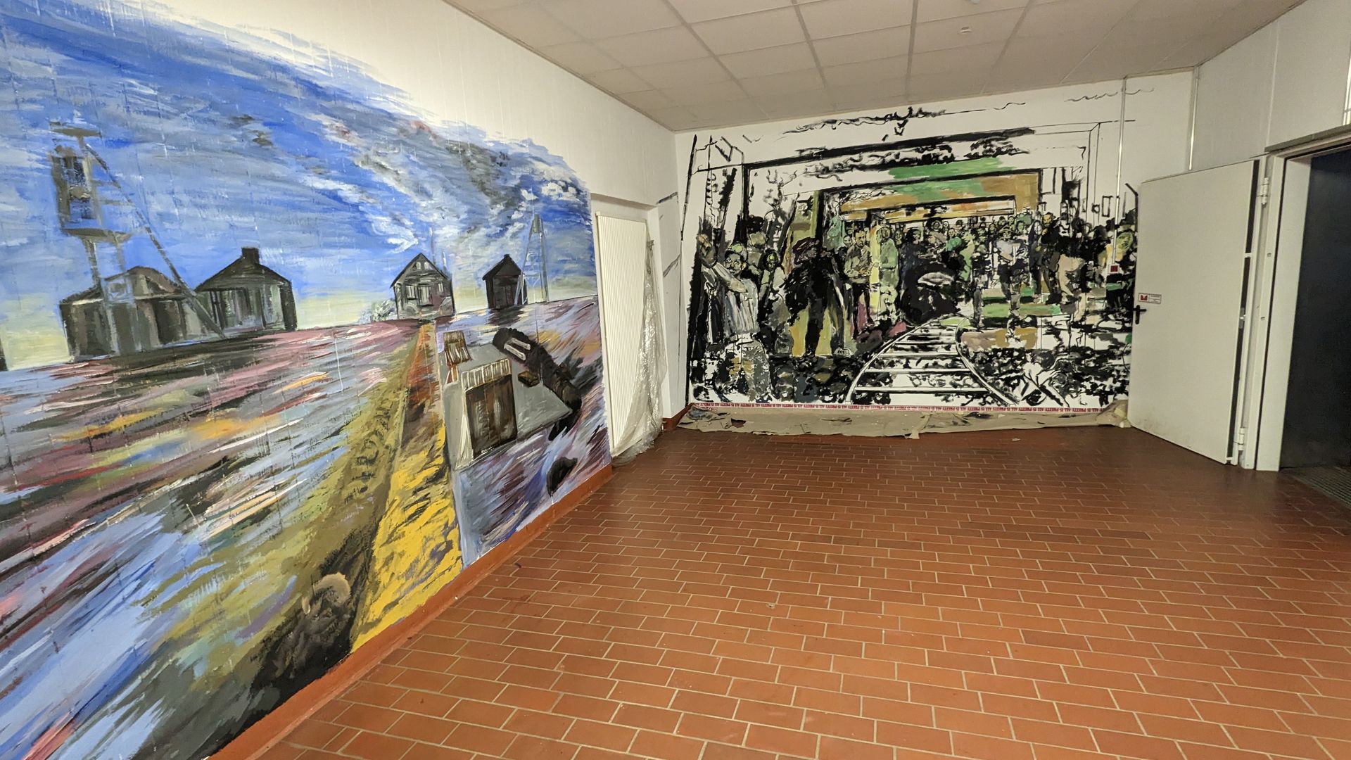 Bestimmt habt ihr schon gemerkt, dass der Flur, der einst so öde und leer war, immer mehr Farbe bekommt und Gestalt annimmt. Immer deutlicher schält sich bei den umfangreichen Wandbildern in der Schulstraße und bei den Installationen im PZ ein Thema heraus, dass einen historischen Bezug zum Standort unserer Schule setzt: Bergbau und Zechenleben!